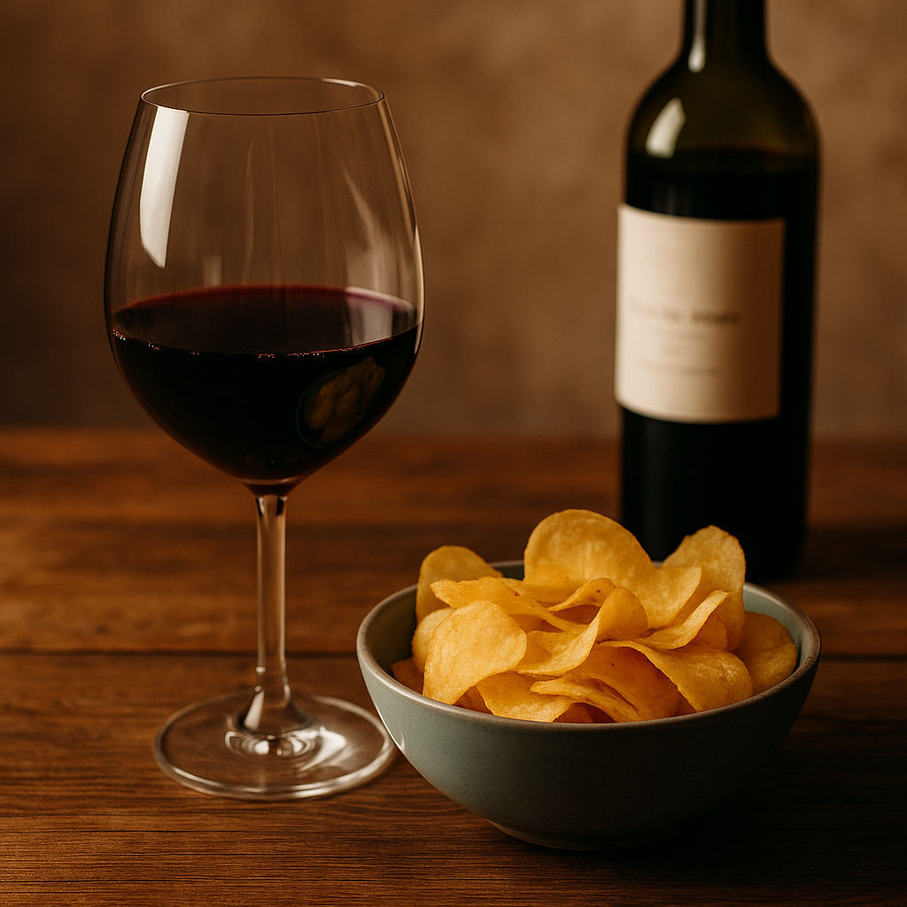 Du vin et des chips : un duo inattendu qui peut pourtant se révéler délicieux.
